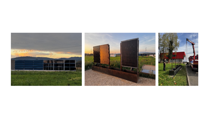 • Stretch 1 – “Sound Solar Panel Evolution”: triangular steel acoustic panels hosting custom PV modules without frames.